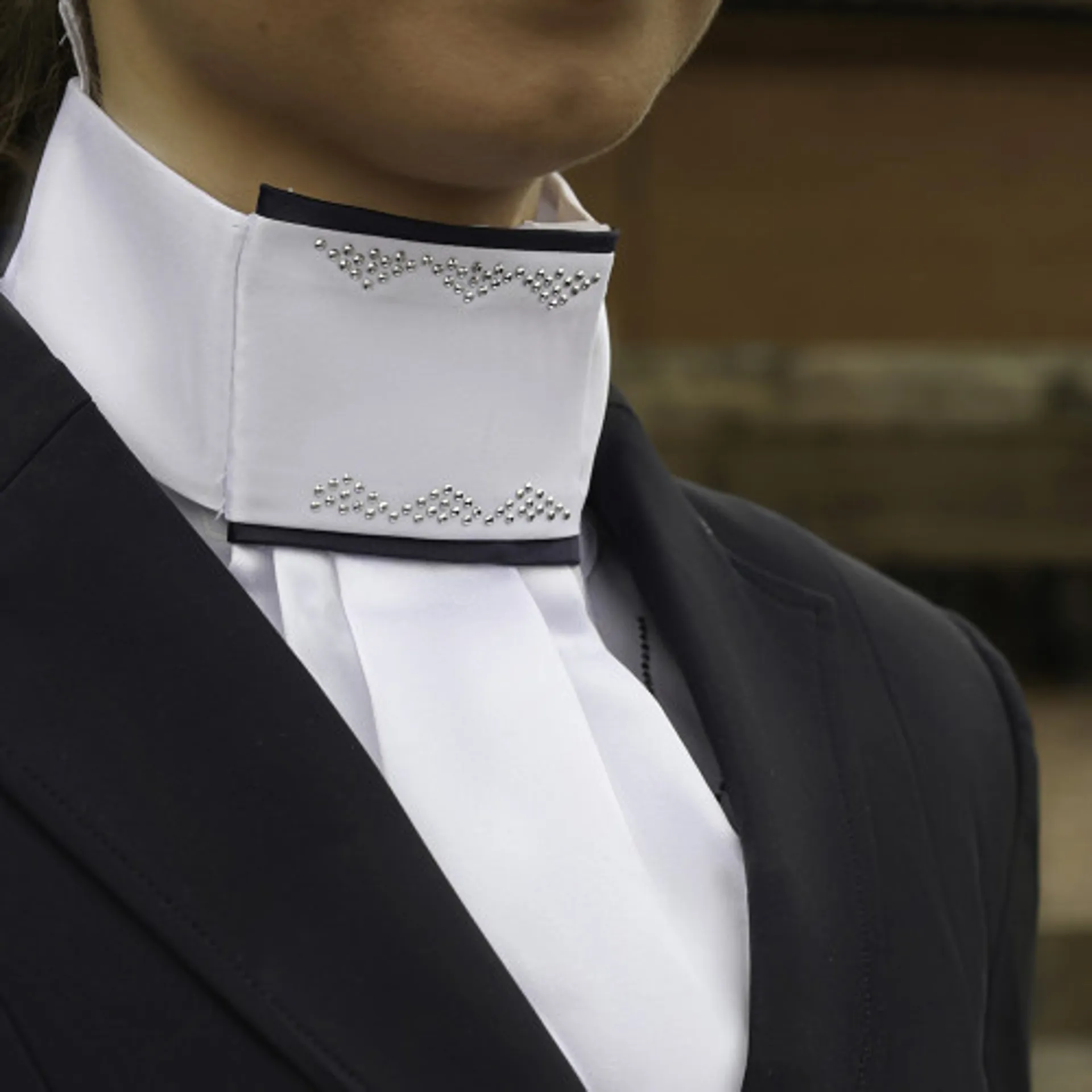 The Coldstream Sunwick Ready Tied Stock is a beautifully crafted accessory for the competitive equestrian athlete. Made in England and designed with elegant silver diamantes, finished with sophisticated navy suede edging.