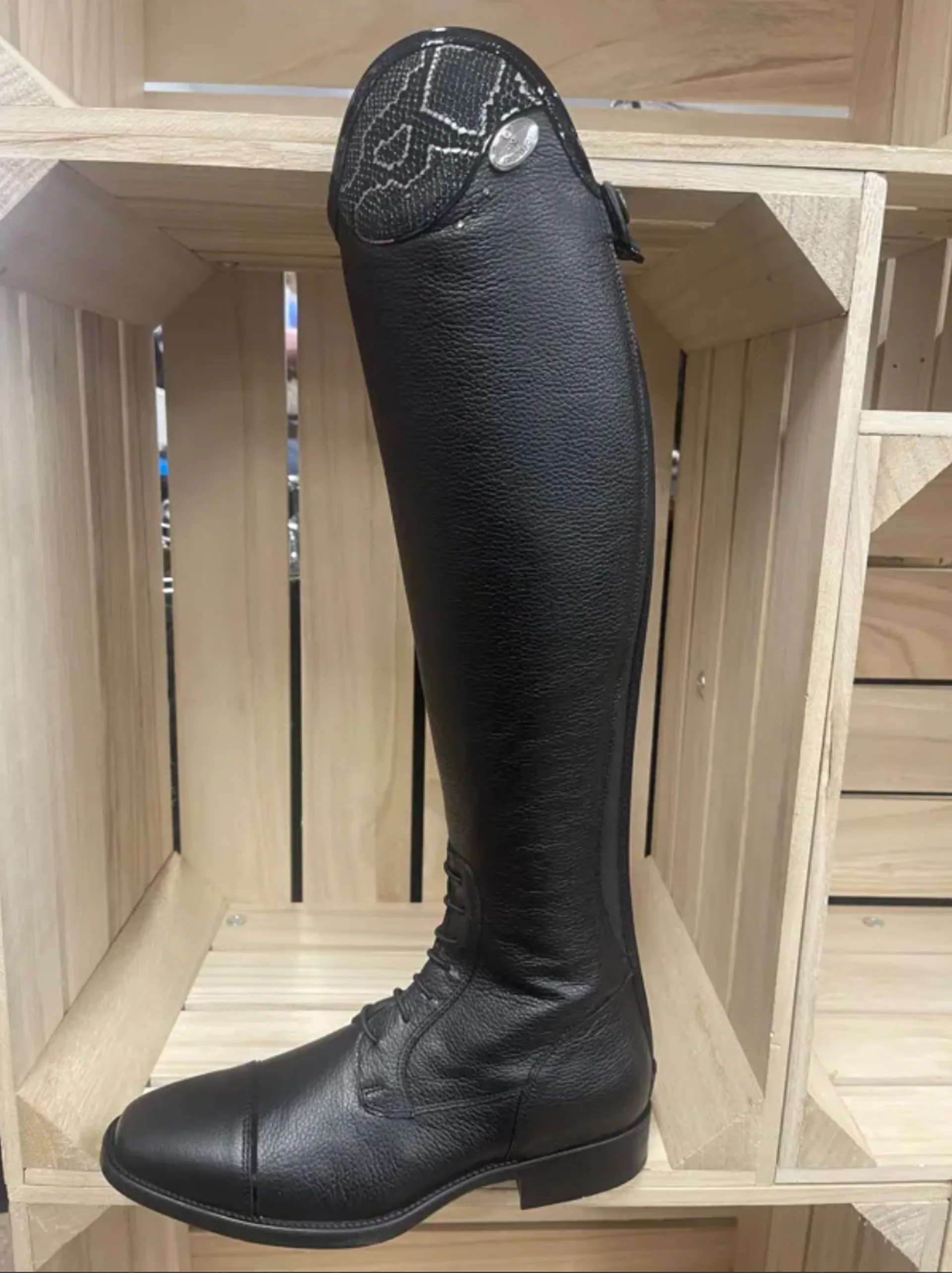 DeNiro Salentino/02 Riding Boot Laced Quick Leather Black with Regal Silver Top