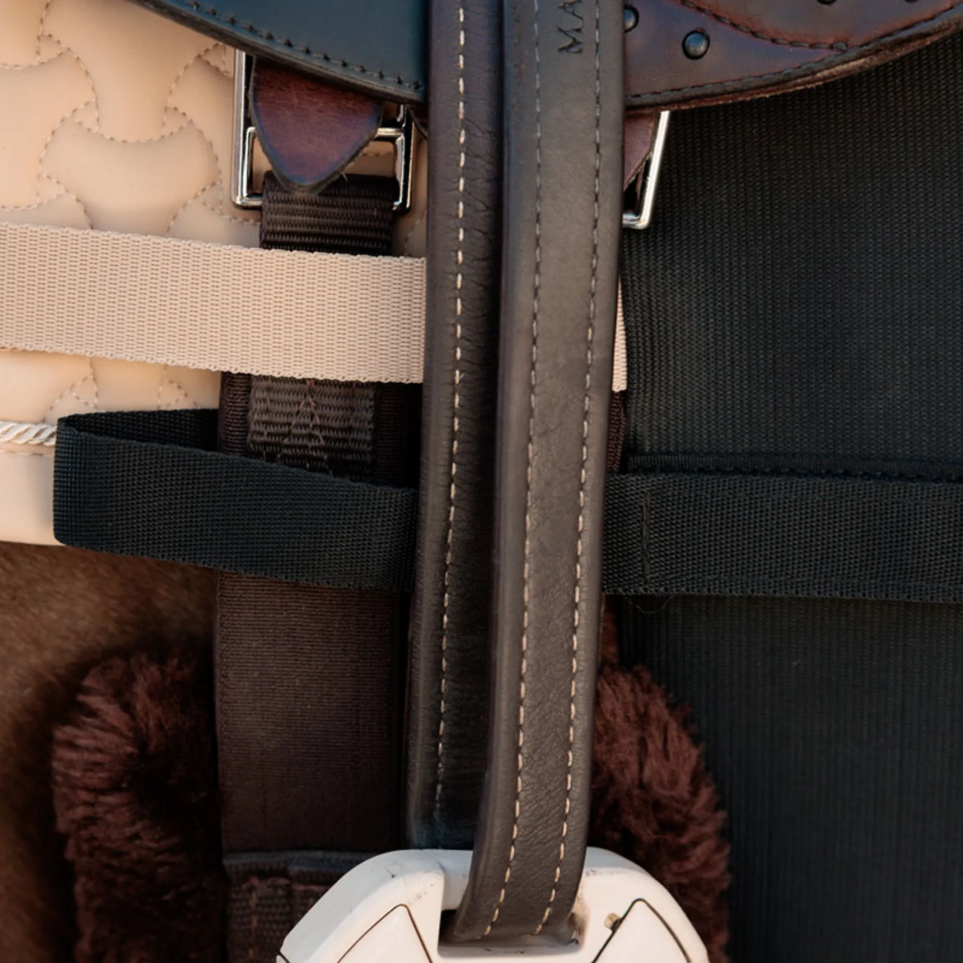 The Belly Band offers reliable protection where horses need it most. Made of strong yet flexible elastic, it moves with the horse and stays comfortably in place thanks to its multi-point attachment system. The soft neoprene section under the belly provides a cushion against pressure and friction, making it ideal for horses with sensitive skin or during intensive training periods.