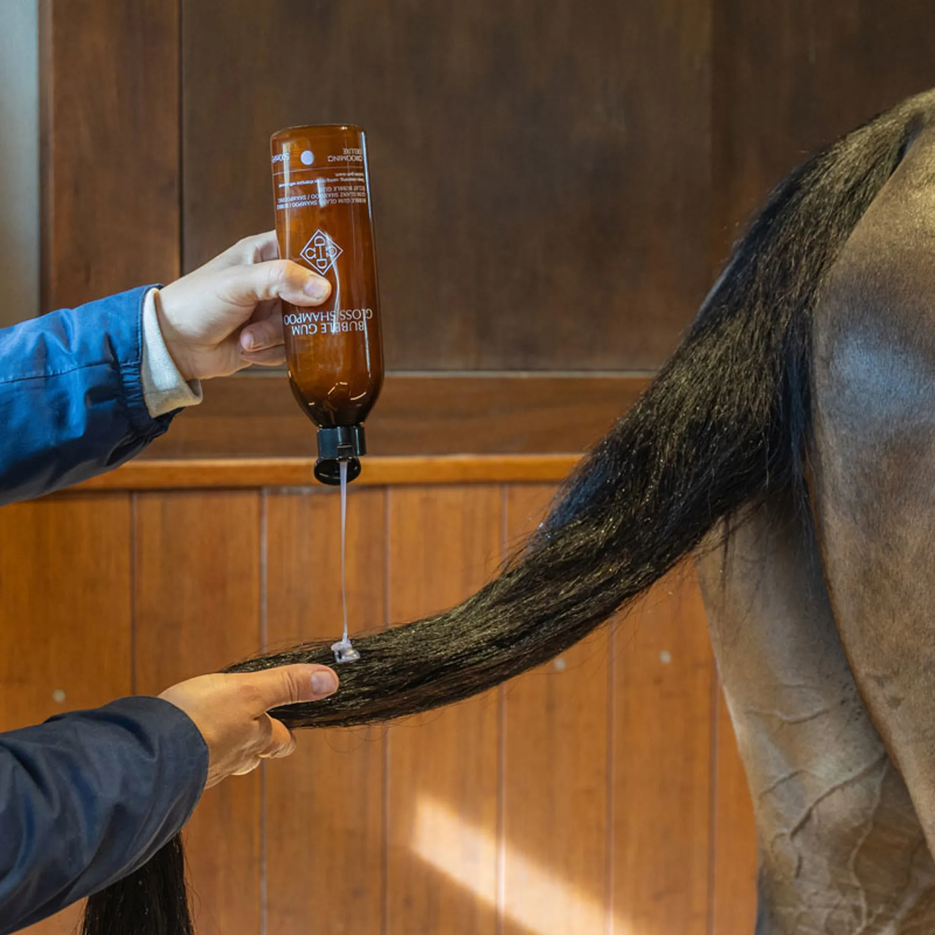 Wet the horse’s coat – Put a small quantity of the Bubble Gum Shampoo in a bucket of lukewarm water or use directly on wet coat and massage into a lather. In case of stubborn stains, use the Shampoo pure. Rinse thoroughly with lukewarm water. Scrape water from the horse softly.