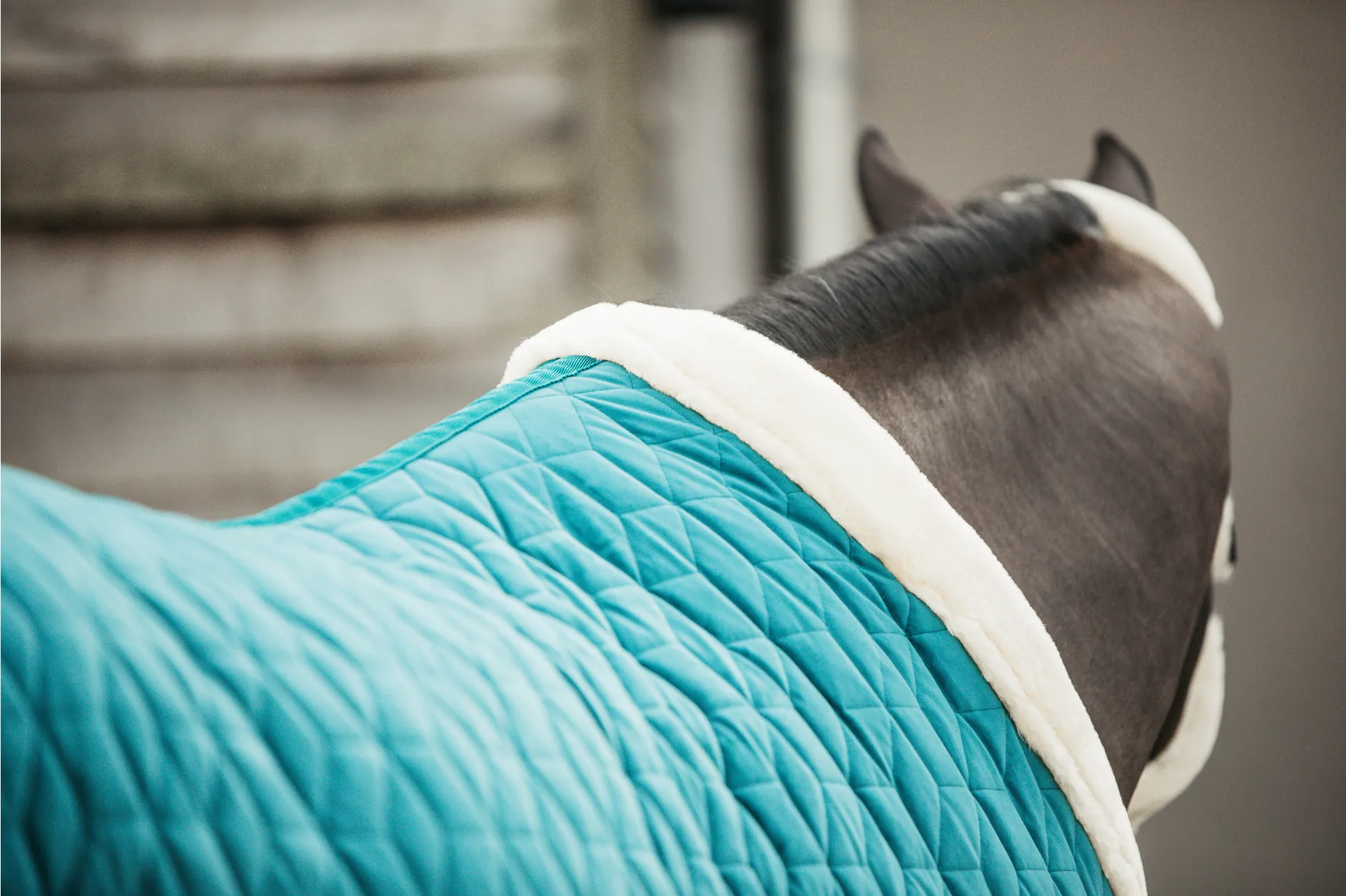 The Kentucky Show Rug is our signature rug and extremely popular around the world. As Kentucky Stands for innovation, we developed a Show Rug with our famous velvet fabric. Because of the velvet style and the elegant artificial sheepskin on the collar, the velvet rug is a real eye-catcher!