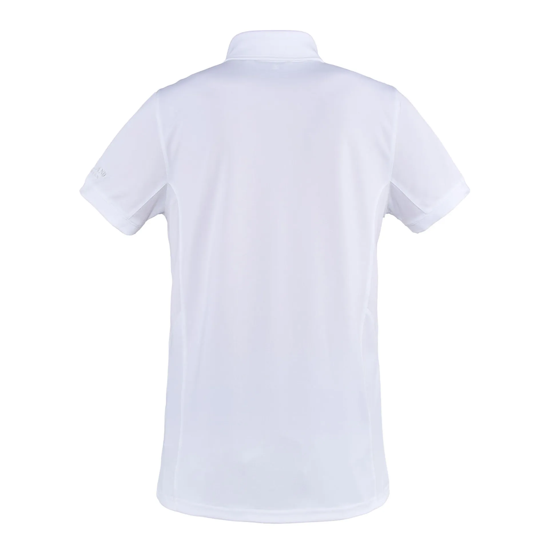 Men functional high performance show shirt. Breathable, quick dry and technical fabric. Mesh under sleeves for good ventilation. 3 coloured striped neck tape inside collar. Front placket with hidden buttons.