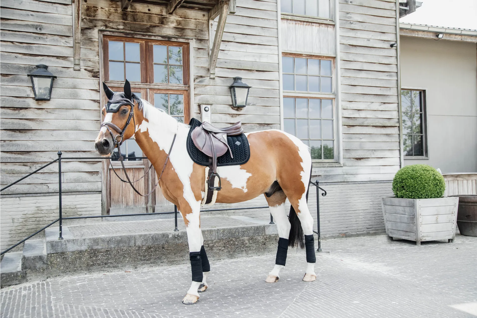 When your horse sweats a lot during workout, we advise you to wash your saddle pad more often as dried sweat can cause rubbing marks. The saddle pad velvet pearls is washable at 30 degrees. We advise you to use a washing bag to avoid the pearls from damaging. Do not tumble dry the saddle pad.