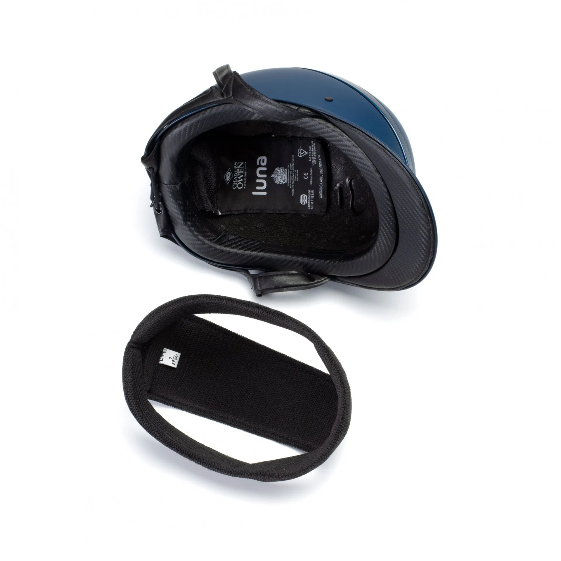 Designed for everyday riding theCharles Owen Luna Riding Hatoffers low profile styling. The unique 360° ventilation system under the crown ring helps keep your head cooler. Made with a removable washable padded headband.