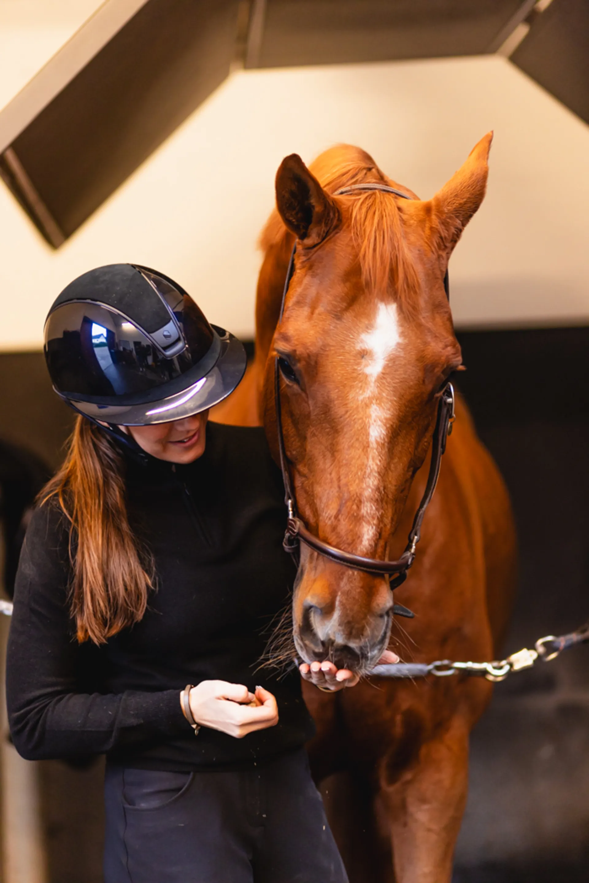 We're delighted to present our brand-new MissShield 2.0 helmet. Shadowglossy Blue with Alcantara Blue Top and Band.