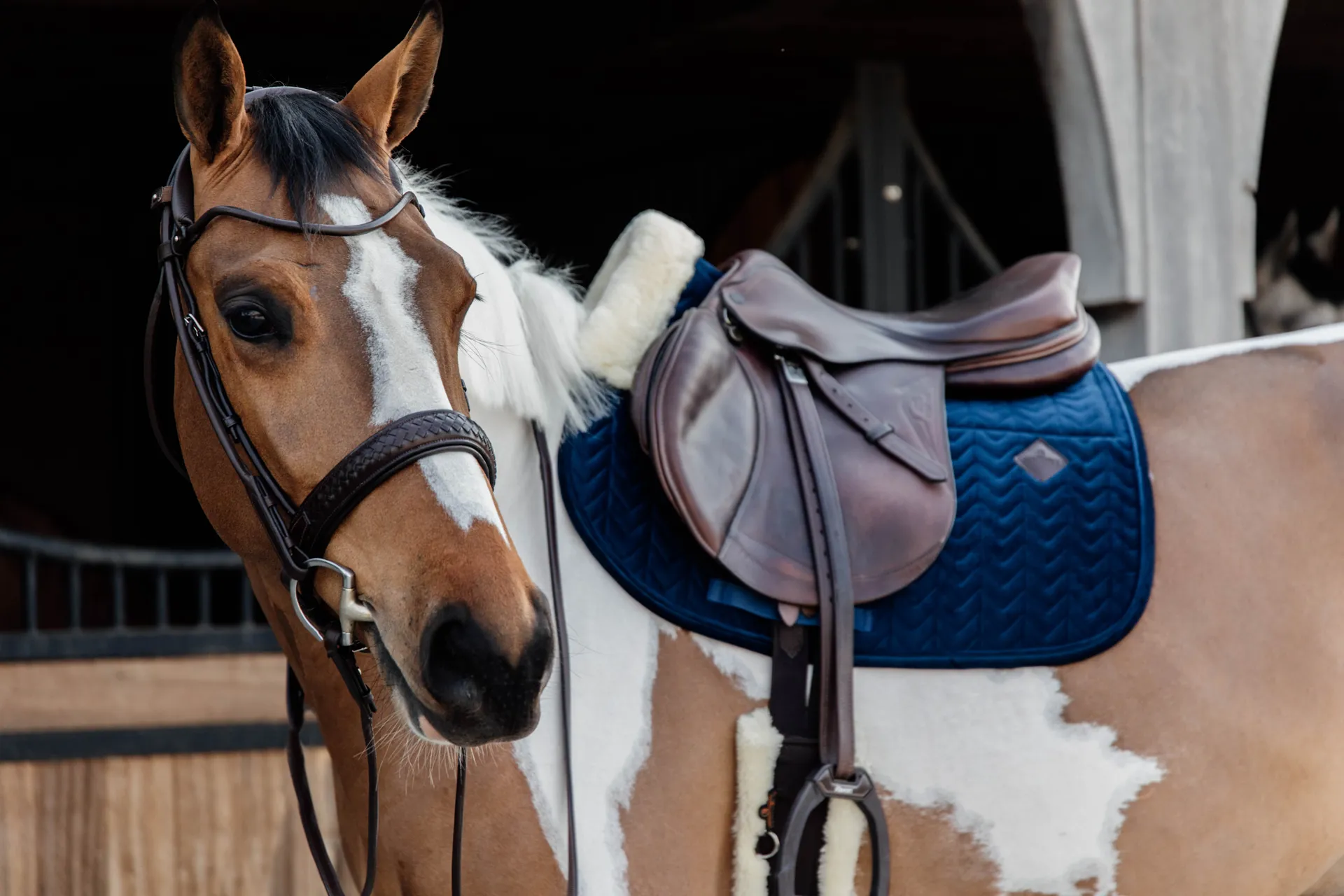 The withers and back of the saddle pad are lined with vegan sheepskin. This offers excellent cushioning and avoids rubbing on the horse’s back. For horses with sensitive skin, this is particularly comfortable. The outside of the saddle pad is made from soft velvet fabric. The saddle pad is quilted in a stylish fishbone quilting.