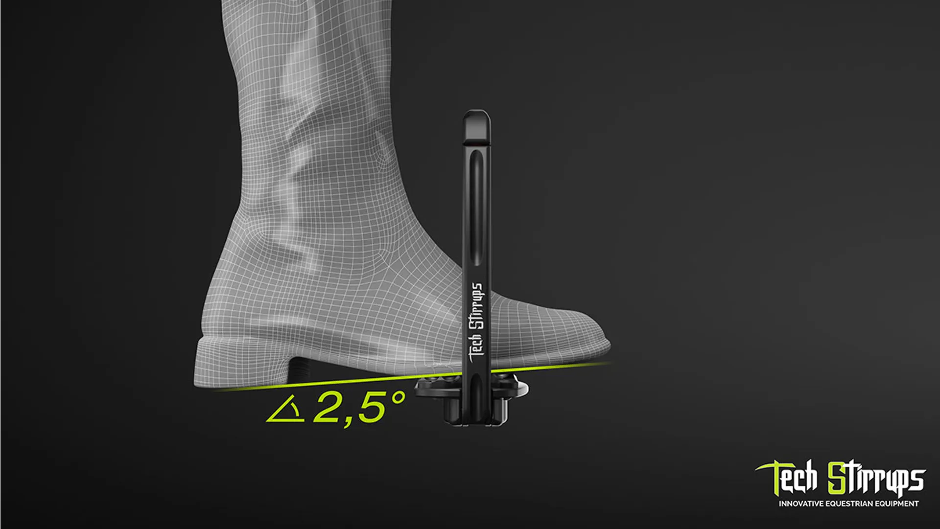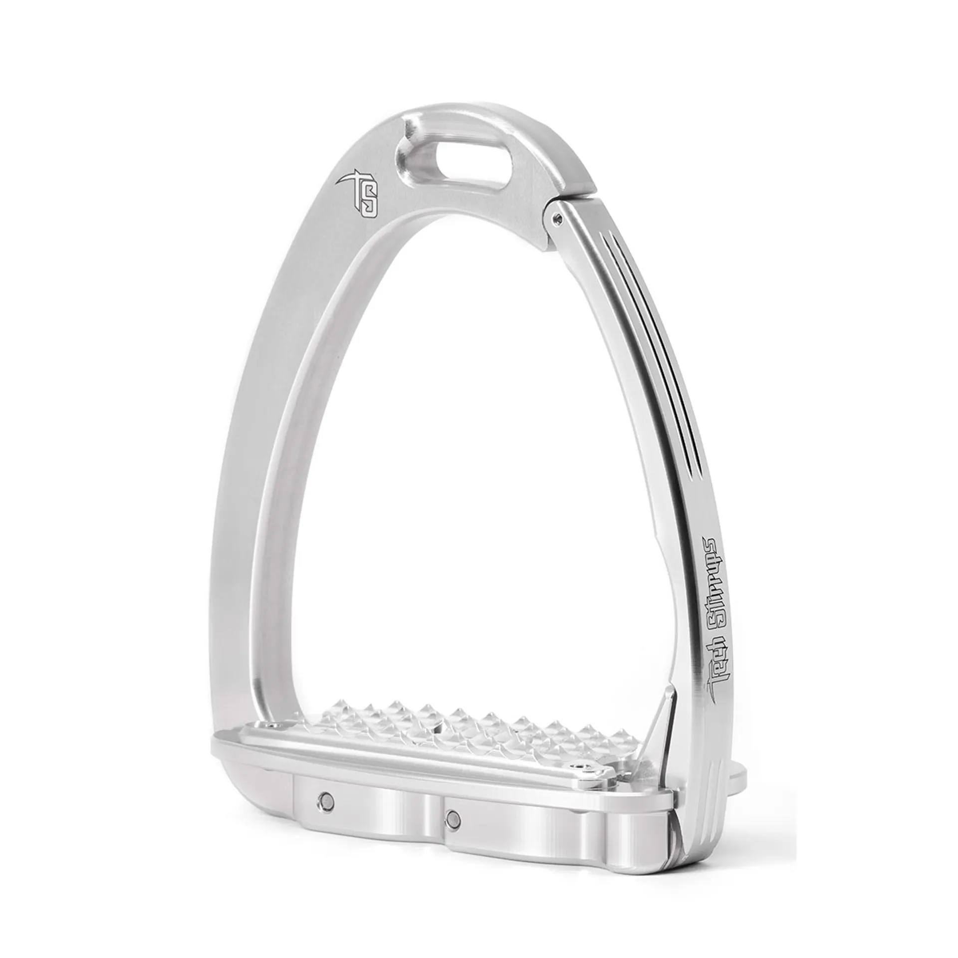 Thanks to the Tech Stirrups safety mechanism, the foot has to get the moving part open in case of fall, and this part then goes back to closed position automatically. Dressage Sloped for the perfect position.
