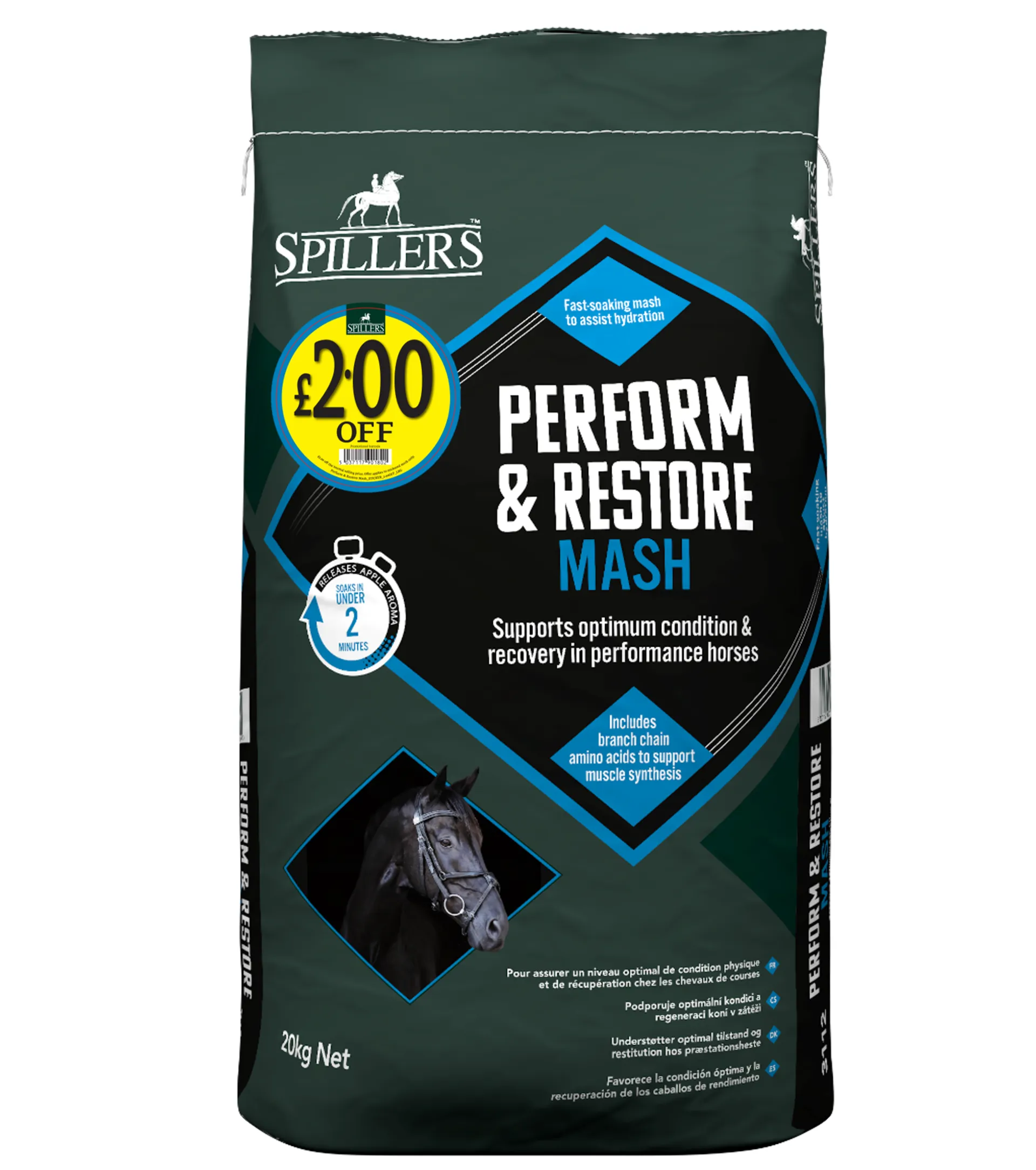 Spillers Perform & Restore Mash supports optimum condition and recovery in performance horses. The fast-soaking mash assists hydration while added amino acids support muscle health.Fast soaking fibre blend to support optimum condition and recovery in performance horses.